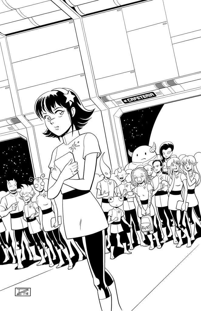 Digital inks using Manga Studio 4. I didn’t do traditional inks for this piece because I had already inked the entire story in Manga Studio and I wanted the look to be consistent.