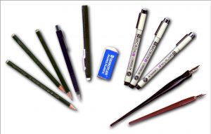 • Sakura MICRON pens, size 005, 01, 05, & 08 for finer lines for backgrounds & technical art